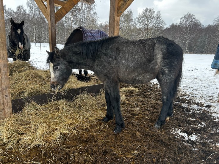 Der Kleine hat so dickes Fell. Wie ein Chinchilla. Oder wie ein Esel, sagt meine Mutter… Er hat es irgendwie geschafft, dass er so niedlich und frech und freundlich ist, dass er zwischen den Prinzessinnen besonders hervorsticht und irgendwie mein Lieblingsfohlen ist.