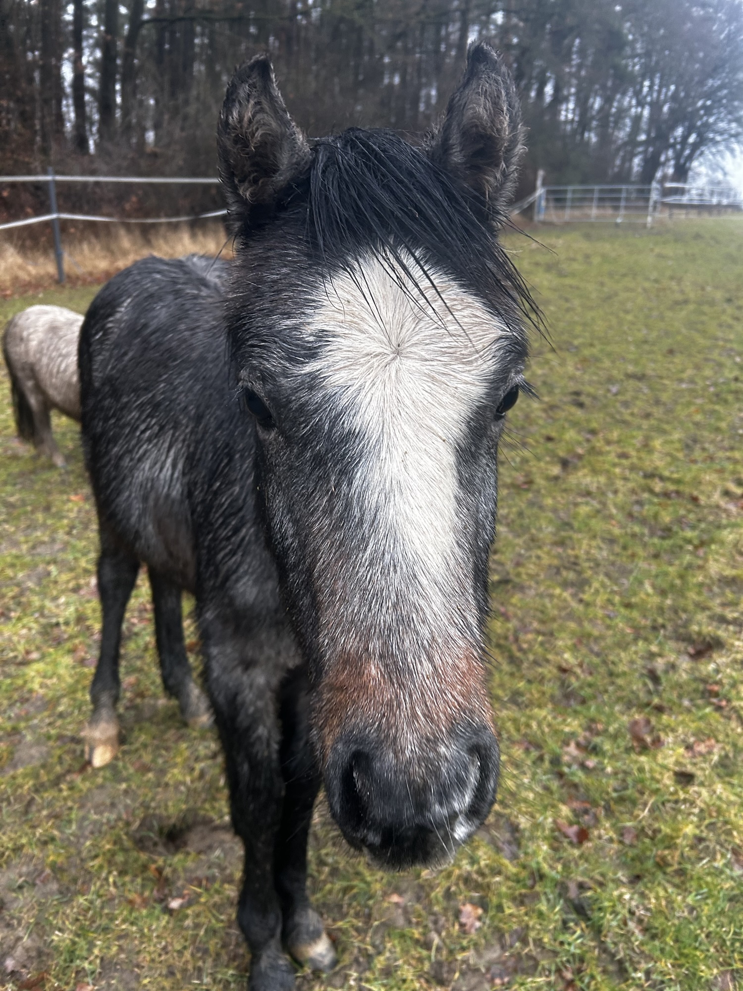 Er sieht aus wie n Chinchilla. So süß. So flauschig. Bin gespannt aufs Sommerfell. Er war auch wirklich artig beim Schmied. Er ist echt süß. So ein liebes Fohlen.