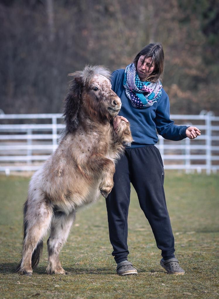 Winnie sieht verdammt niedlich aus, ist aber absolut kein Kinderspielzeug. Er ist rotzfrech, tritt, schlägt beißt und frisst kleine Kinder. Spaß bei Seite: Er ist tatsächlich trotz seiner Größe mit Vorsicht zu genießen. Er lässt sich nichts gefallen und mag viele Dinge eben nicht. Dabei kann er echt fies werden. Er ist halt der Terrier unter den Pferden. Nicht nur süß und knuddelig.