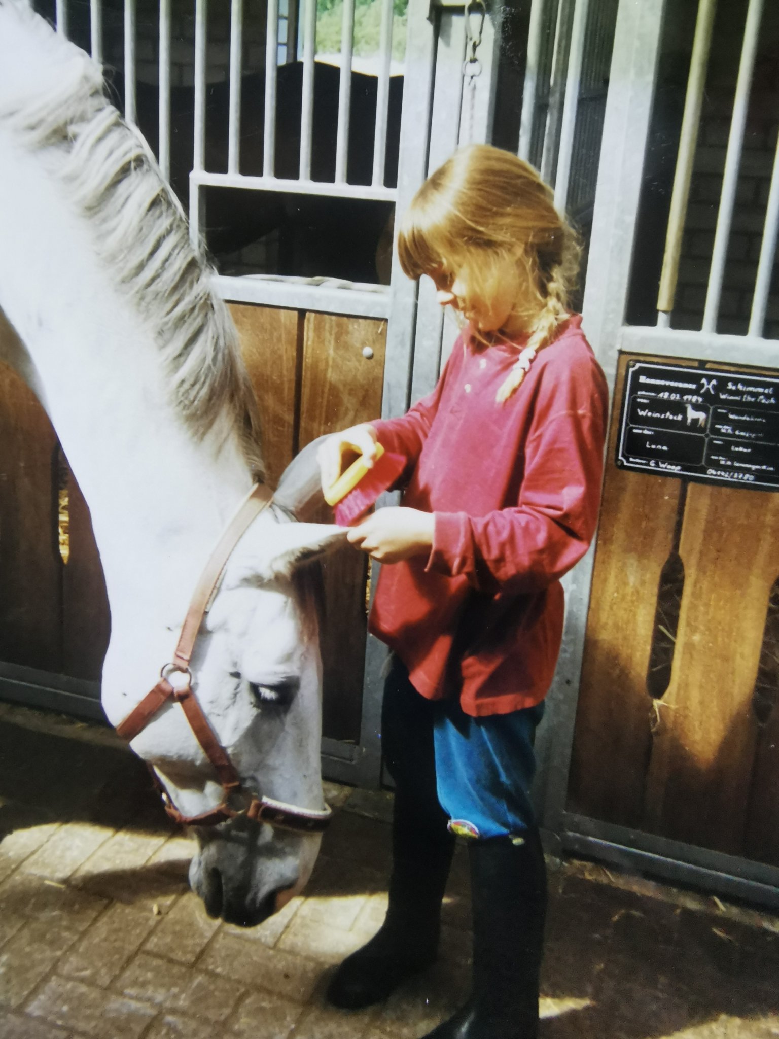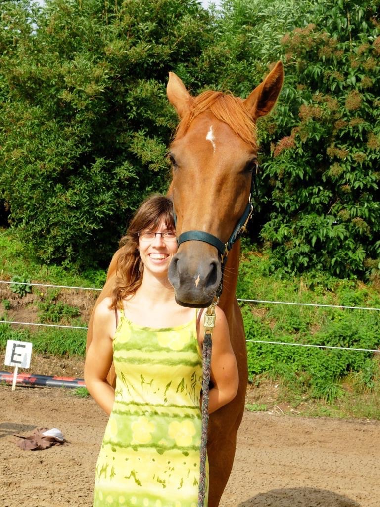 Ich hatte das große Glück und bin mit Pferden aufgewachsen. Meine Eltern hatten immer Pferde und durch Freunde und Bekannte meiner Eltern, hatte ich auch irgendwie immer ein Pferd das ich fast alleine reiten konnte. Angefangen mit meinem Kinderpony Meike, die 1987 geboren ist und tatsächlich immer noch bei einer Bekannten lebt. Dann durfte ich immer häufig Winny, dass Pferd meines Vaters, reiten. Wir haben ihn nur Schimmi genannt. Er war und ist das liebste Pferd das ich jemals kennen gelernt habe. Immer lieb und absolut zuverlässig. Ich konnte ihn bereits mit 4 Jahren alleine auf halftern und vom Zaun aus auch auf seinen Rücken klettern und reiten. Zum auf halftern hat er immer seinen Kopf ganz nach unten genommen. Diese Pferde sind so viel wertvoller als alles andere! Als unser alter Schimmi starb, konnte ich erst 2 Jahre Immo, einen Vollblüter, mit reiten und danach das alte Blümchen. Sie alle waren liebe tolle Lehrpferde. Bis auf Meike. Das war ein richtiges Shetty!