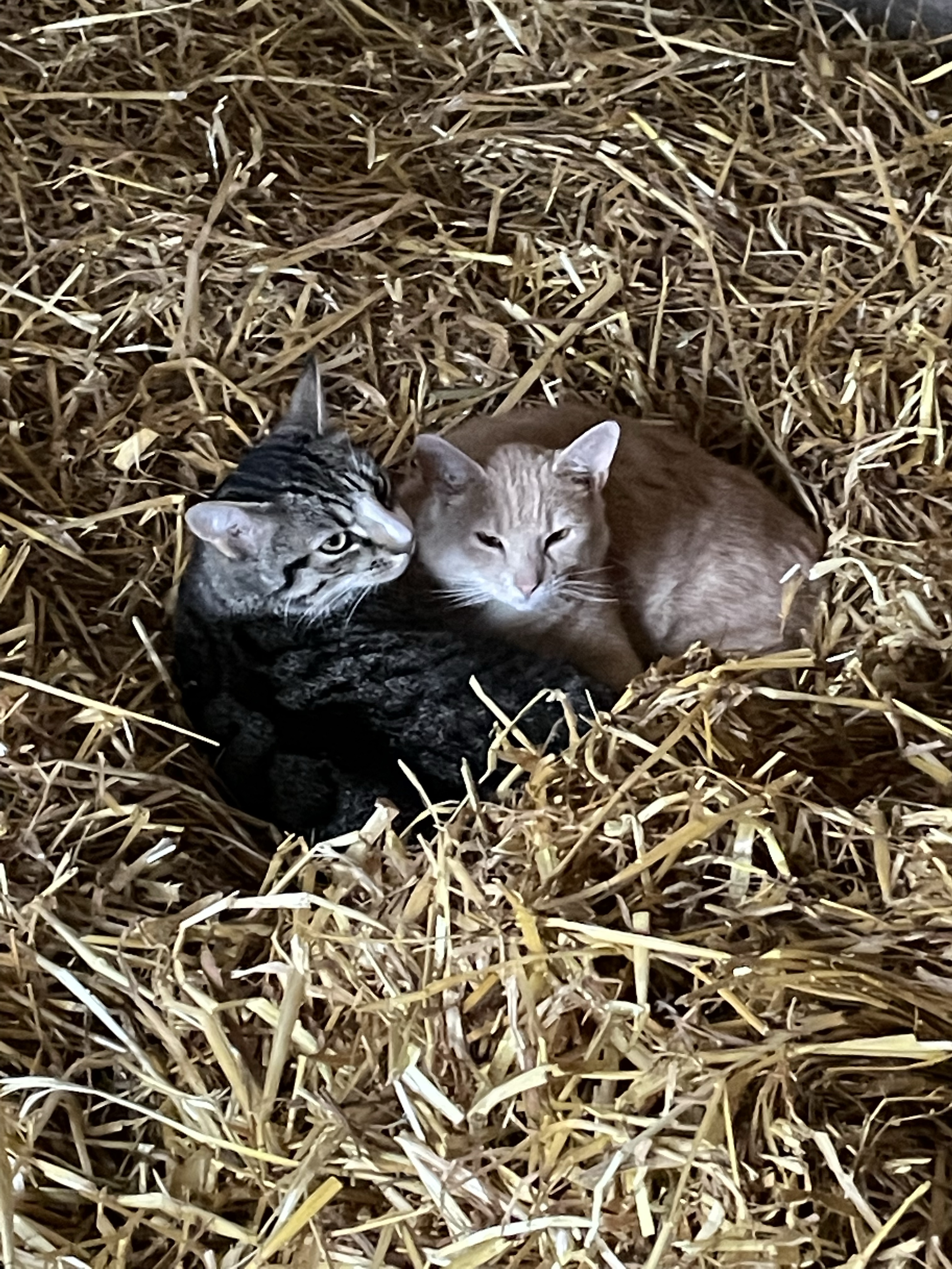 Nach dem Umzug habe ich mit schlimmsten Protest gerechnet, als die beiden eine Woche im Haus eingesperrt sein mussten. Bis auf die ersten Wochen, als sie als Kätzchen in den Stall gezogen sind, waren sie niemals eingesperrt. Tatsächlich hat aber alles super funktioniert. Sie wollten anfangs nicht mal raus. Haben viel auf der Fensterbank gesessen und haben erst nach und nach angefangen das Haus zu durchstreifen. Wenn ich die Tür auf gemacht habe sind sie zurück in ihr Zimmer. Nach sieben oder acht Tagen, waren dann eh ständig alle Türen offen und plötzlich waren sie wieder draußen. Den ersten Abend sind sie brav wieder rein gekommen, den zweiten Abend gab es Theater. Die Kater wollten nicht mehr rein. Sie sind Stallkater!
