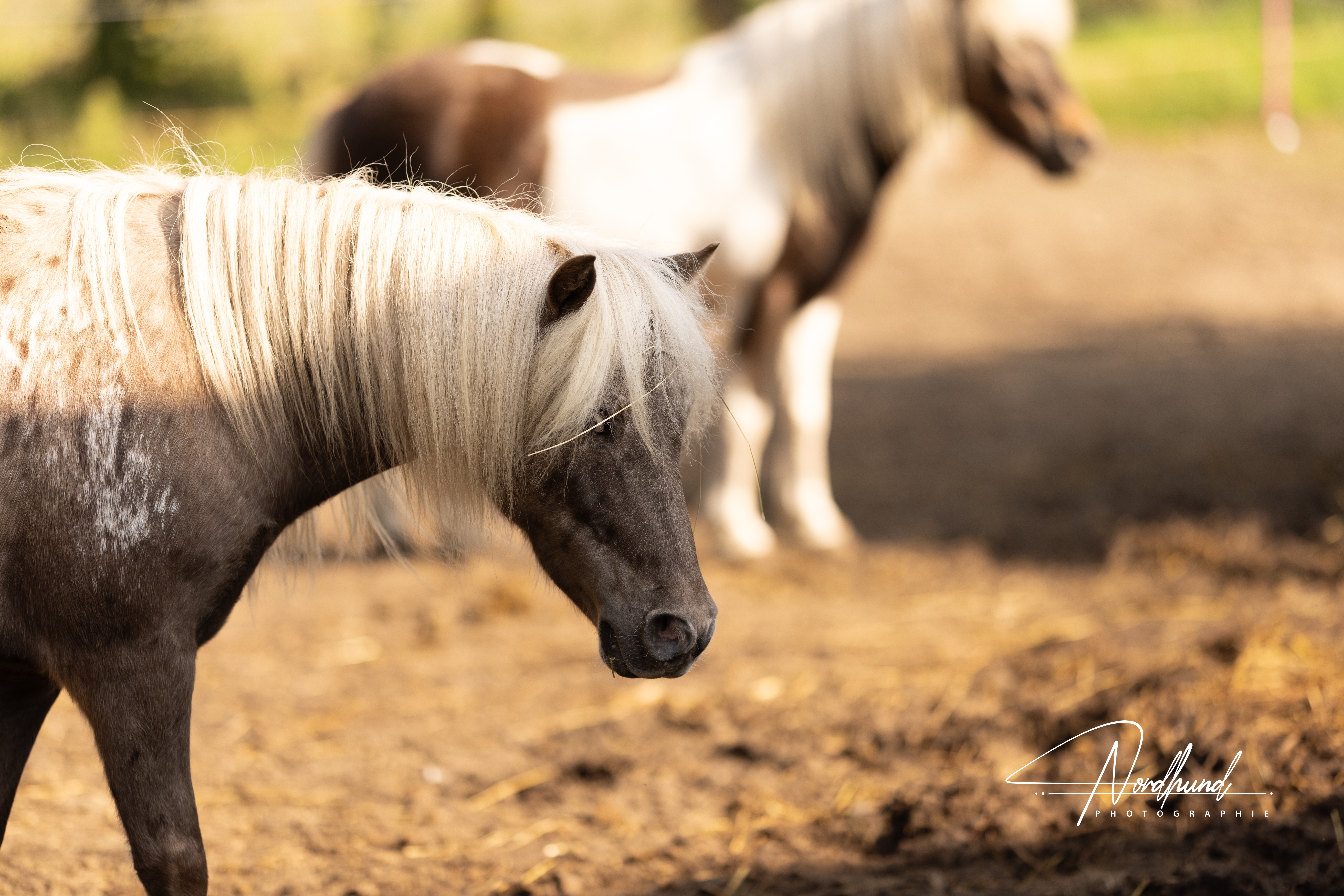 Unsere Mira ist als Fohlen zu uns gekommen und war lange Zeit unser kleiner Sonnenschein. Sie ist so ein bildhübsches Pony. Leider war es ihr bei uns zu langweilig und sie war unterfordert. Unsere Jungpferde stehen einfach mit in der Herde, werden hin und wieder geputzt und mal mit auf Spaziergänge genommen, aber wir arbeiten nicht wirklich mit ihnen, bevor sie 2 1/2 – 3 Jahre alt sind. Mira war das viel zu blöd. Sie hat viele eigene Ideen entwickelt und so war ich schon länger am überlegen sie weiter zu geben. Die Schwester einer Freundin hat sich dann Hals über Kopf in unsere wunderschöne Norwegerdame verliebt und hatte Lust sich mit ihr zu beschäftigen und den kleinen Esel zu erziehen. So konnte ich mit gutem Gewissen auch unsere Mira in ihr neues Zuhause entlassen. Sie wohnt jetzt bei Arlena in Hamburg.
