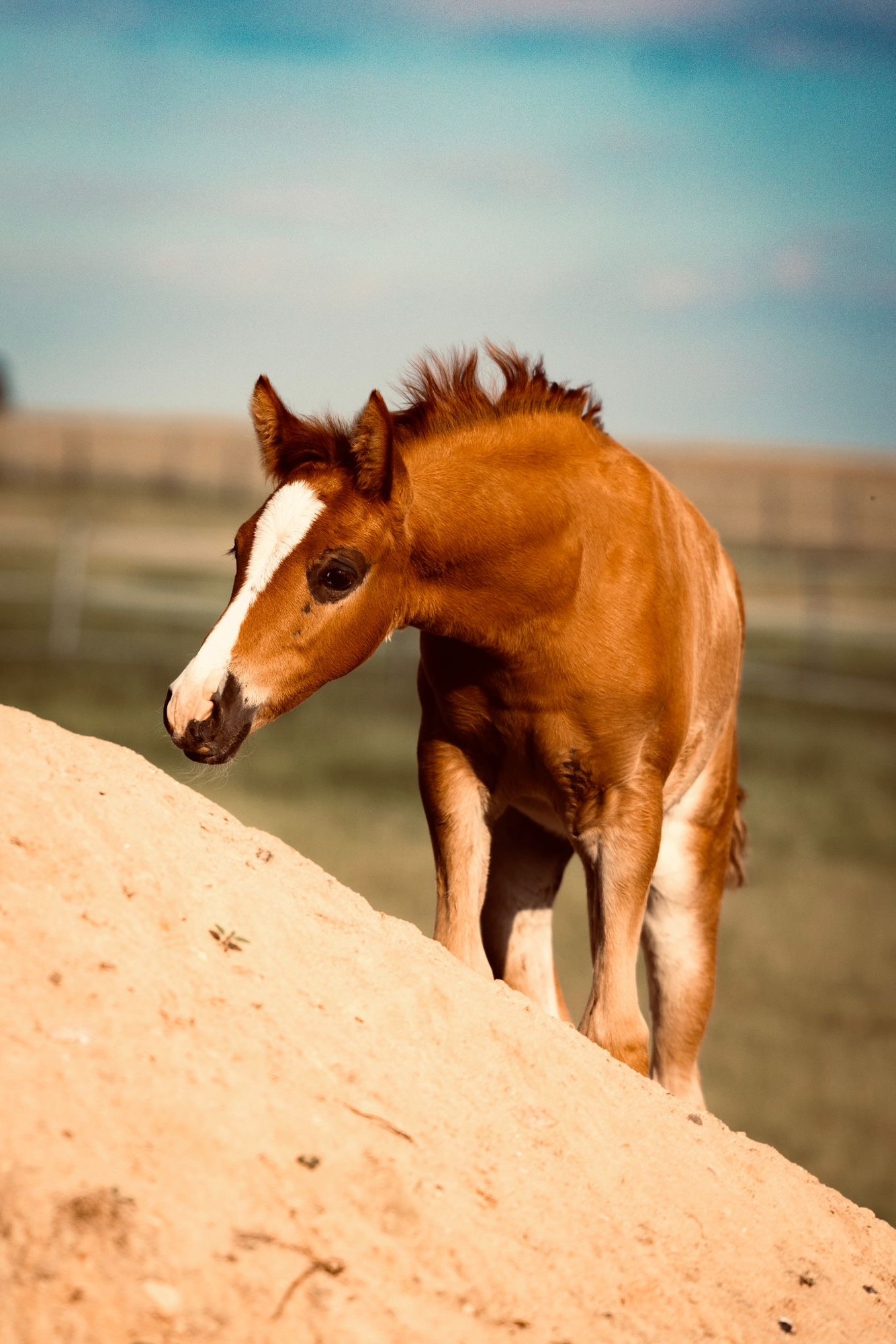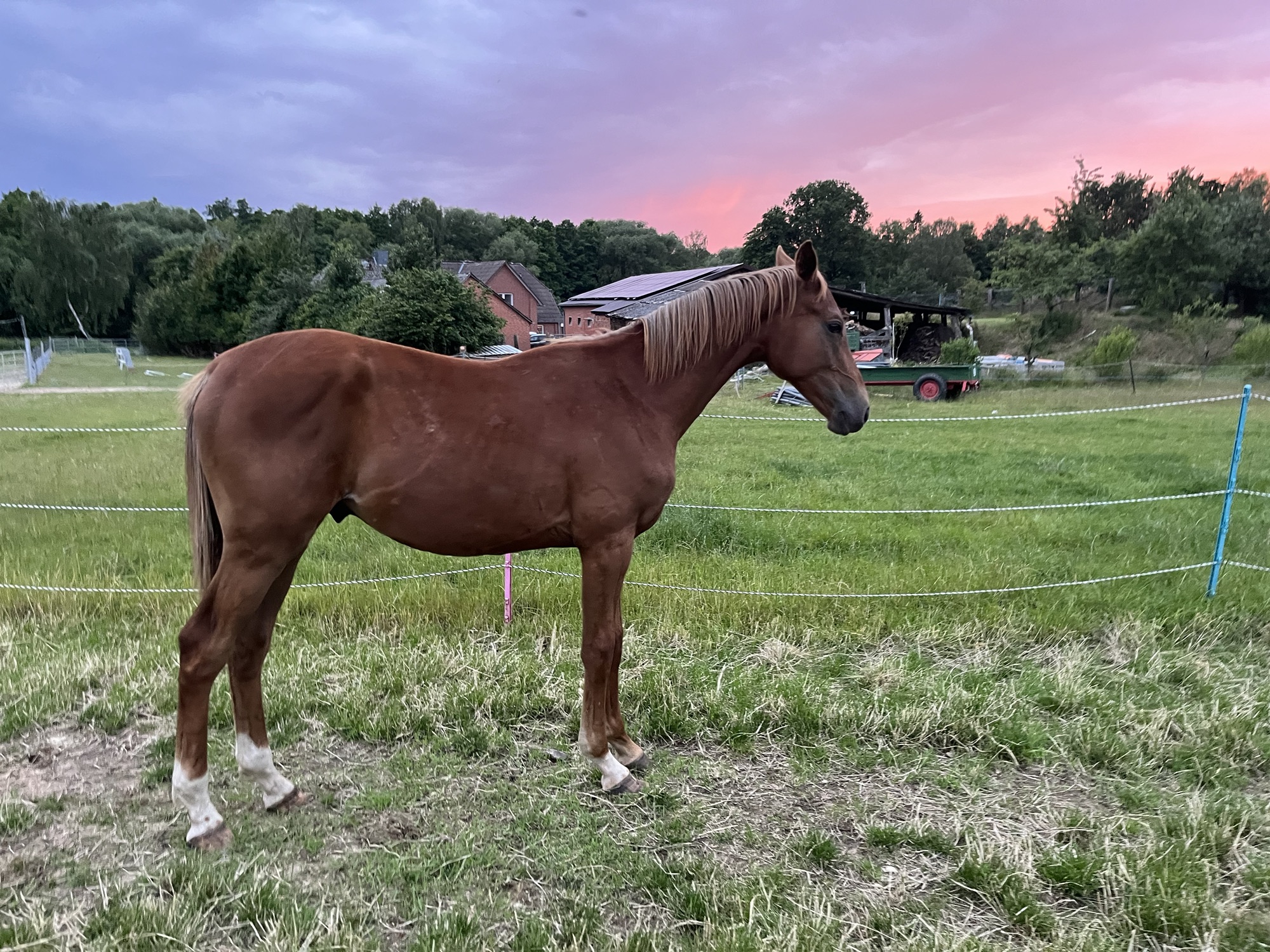 Trotzdem viel mir der Verkauf so unglaublich schwer. Wir haben uns 1 Jahr daran probiert ihn irgendwie in unseren Reitschulbetrieb zu integrieren. Allerdings war er zu der Zeit nur 135 cm, gerade 4 Jahre alt und viel zu schwierig für Kinder. Er hatte ständig vor allem Angst und dann regelrecht in Panik ausgebrochen. Wechselnde Reiter waren gar nichts für ihn. Er brauchte Routine und einen Menschen der verlässlich für ihn da ist. Ein dutzend Zäune später, haben wir uns dann entschlossen zu versuchen ihn zu vermitteln und viele verrückte Menschen kennen gelernt die den gleichen romantischen Gedanken hatten wie wir. Die kleine 8-jährige Tochter, die gerade mit dem Reiten angefangen hat, wird Blues Herz erobern und glücklich mit ihm in den Sonnenuntergang galoppieren. Ich hatte die Hoffnung schon aufgegeben und mich halb entschlossen ihn einfach als Beisteller mitlaufen zu lassen, als ich doch noch eine Anzeige aufgegeben habe, auf die sich sofort zwei Mädels gemeldet haben. Cynthia und Tina waren genau das was er gebraucht hat. Er hat sich gleich von beiden anfassen lassen und als er eingezogen ist und Cynthias Pony Heibelix sofort sein bester Freund war, wusste ich das für ihn doch noch alles gut ausgegangen ist. Er ist nun sogar 140 cm und macht mit Tina jeden scheiß mit. Er wohnt jetzt in der Nähe von Flensburg am Meer.