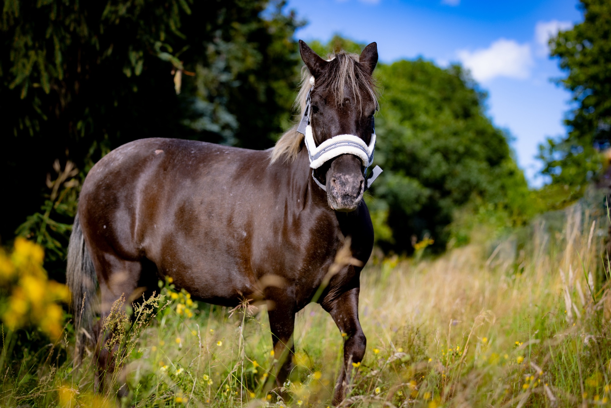Blue war das erste Pony, das ich jemals verkauft habe. Er ist als Landschaftspfelger in den Niederlanden geboren, wurde 3 Jährig eingefangen, kastriert und nach Deutschland gebracht. Er ließ sich nicht mal anfassen als er zu uns gekommen ist. Trotzdem hielt ich das ganze für eine gute Idee, bis ich verstanden habe wie wild unser Blue eigentlich ist.